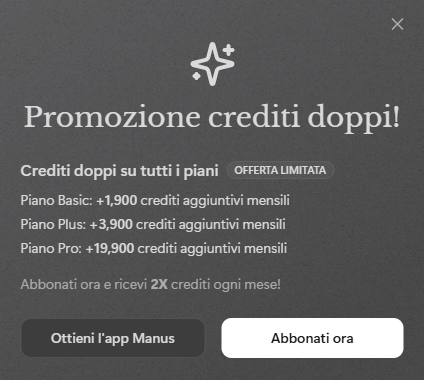 In parallelo, Manus ha attivato una promozione a tempo limitato: